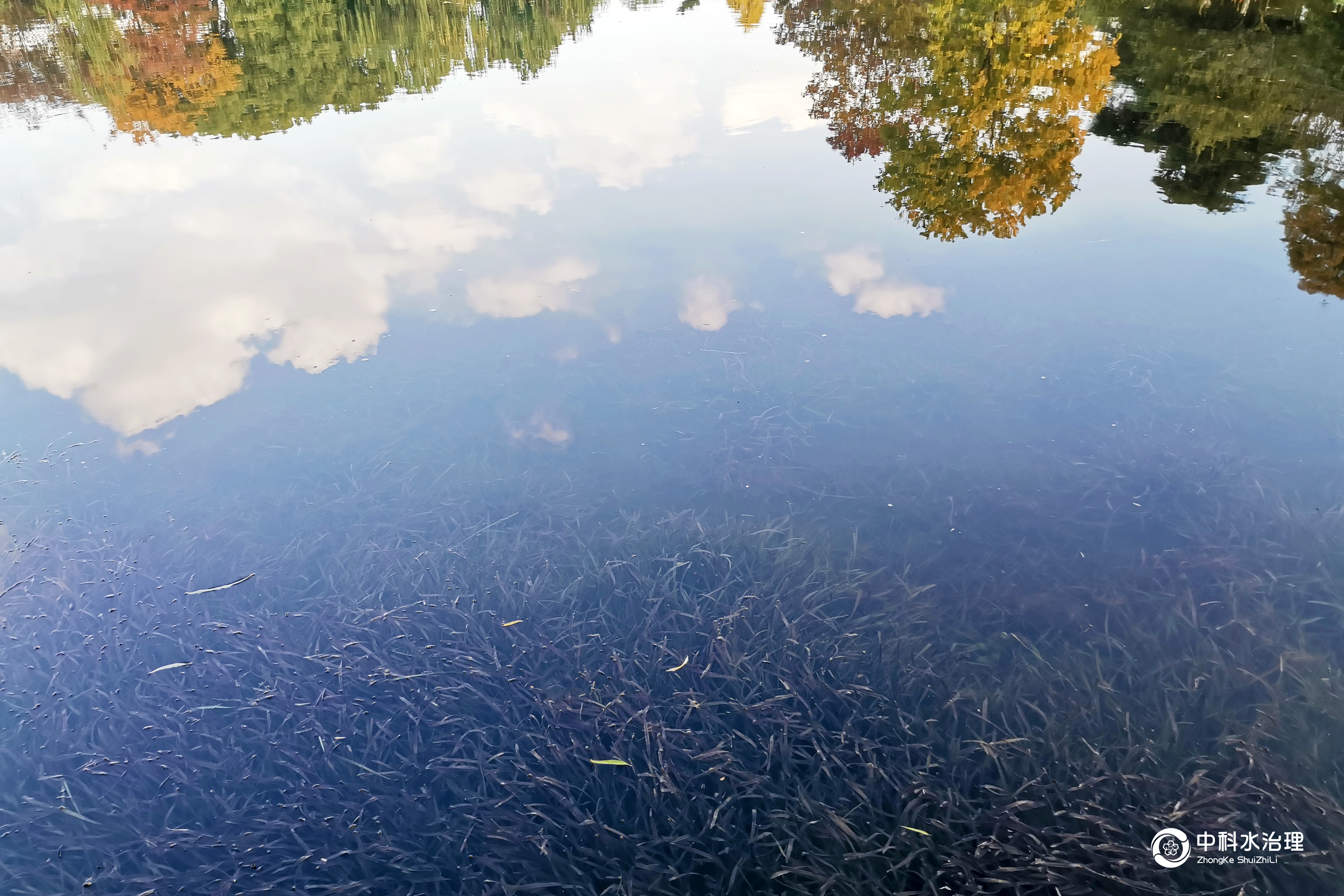 微風(fēng)輕撫湖面倒映出蔚藍的天空