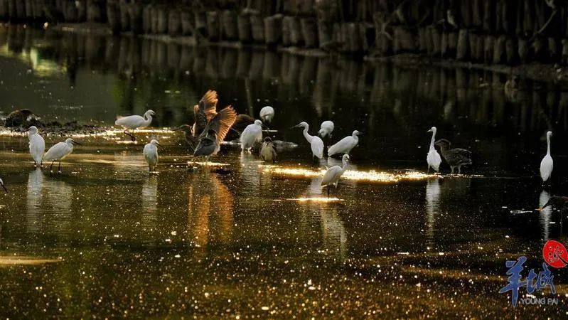 鷺鳥(niǎo)成群翩飛,蔚然壯觀(guān)