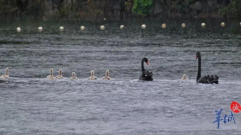 如今,它們一家九口經(jīng)常出來(lái)巡湖游弋